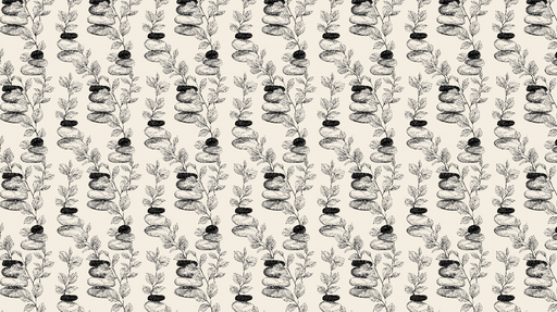 WonderMuralQuesto sfondo mette in evidenza un design sofisticato con pietre impilate, intrecciate con eleganti foglie. Le linee delicate e le sfumature di ner...