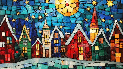 Visualizza tutti i dettagliCarta da parati vetro colorato | Villaggi colorati sotto un cielo stellato
