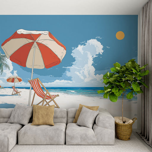 WonderMuralQuesta carta da parati murale evoca vacanze idilliache con il suo paesaggio soleggiato in spiaggia. Sotto un cielo azzurro e luminoso, le sdraio ad...