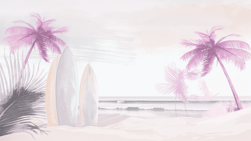 WonderMuralIl nostro wallpaper evoca un paradiso tropicale con le sue delicate tonalità rosa e le silhouette delle palme. Le tavole da surf, leggermente incli...