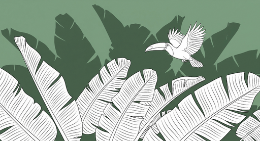 WonderMuralQuesto wallpaper mette in evidenza un dinamico tucano che vola tra maestose foglie tropicali. Il design minimalista enfatizza le linee pulite delle...