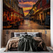 Perfetta per creare una parete d'accento sorprendente, trasforma la tua stanza con questa scena cittadina illuminata e vivace.