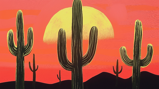 Visualizza tutti i dettagliCarta da parati deserto | Cactus stilizzati al tramonto