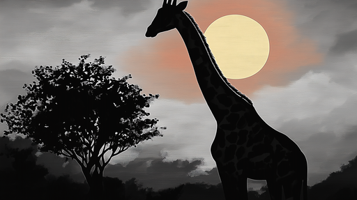 WonderMuralQuesta carta da parati murale presenta una maestosa silhouette di giraffa che si staglia su uno sfondo rilassante al tramonto in tonalità di grigio...