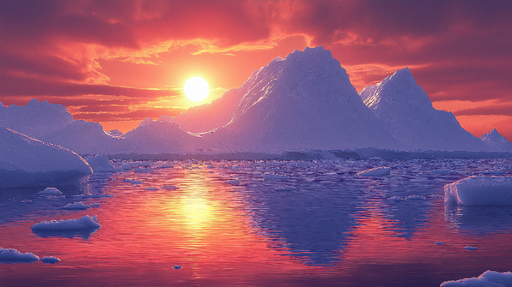 WonderMuralQuesta carta da parati murale evoca uno splendido paesaggio artico, dove un sublime tramonto si riflette su iceberg scintillanti. Le tonalità di vi...