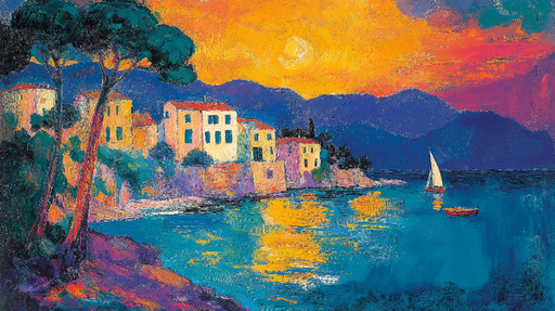 Visualizza tutti i dettagliCarta da parati paesaggio costiero | Acquerello mediterraneo al tramonto