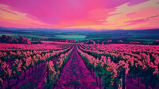 WonderMuralQuesta affascinante carta da parati murale raffigura un vigneto dai colori vibranti, bagnato da una calda luce al tramonto. Le file di viti, adorna...