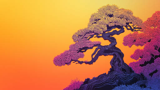 Visualizza tutti i dettagliCarta da parati albero stilizzato | Albero con colori vibranti su sfondo sfumato