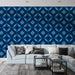 Aggiungi un tocco contemporaneo e raffinato al tuo interno con la nostra carta da parati murale geometrica blu. I suoi motivi a diamante nei toni del blu creano un'atmosfera elegante e dinamica, ideale per un soggiorno moderno, un ufficio o una camera da letto.
