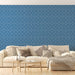 Aggiungi un tocco di modernità al tuo spazio con questa carta da parati murale geometrica blu e bianca. Il suo design a stelle crea un effetto visivo affascinante ed elegante, ideale per un soggiorno o ufficio contemporaneo.