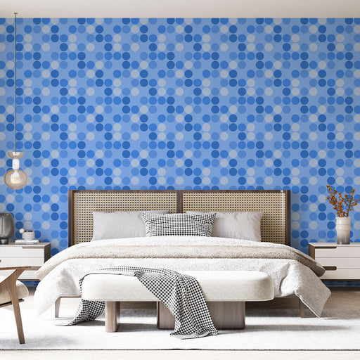 Studio SamaPorta un tocco moderno e giocoso al tuo interno con la nostra carta da parati murale a pois con un motivo di punti blu disposti in un elegante grig...