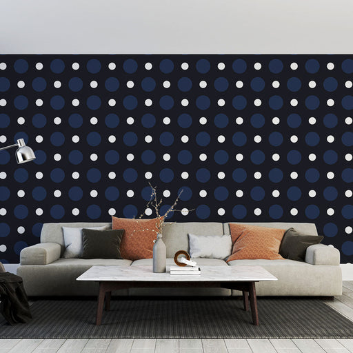 Visualizza tutti i dettagliCarta da parati a pois | Motivo blu navy e bianco
