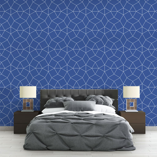 Studio SamaQuesta carta da parati murale geometrica presenta un complesso motivo di pentagoni in blu e bianco, perfetto per dare un tocco moderno e sofisticat...