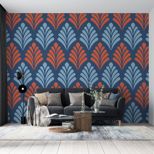 Visualizza tutti i dettagliCarta da parati vintage | Motivo arancione e blu retrò