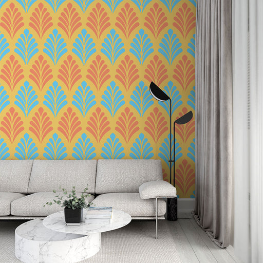 Visualizza tutti i dettagliCarta da parati a conchiglia | Modello colorato blu e arancione