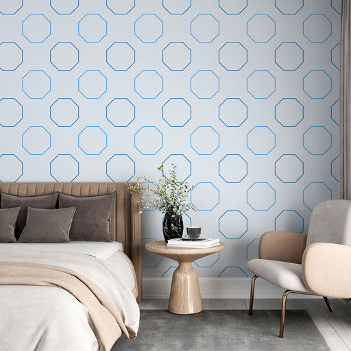 Studio SamaAggiungi un tocco moderno al tuo interno con la nostra carta da parati murale geometrica caratterizzata da delicati motivi esagonali blu su sfondo ...