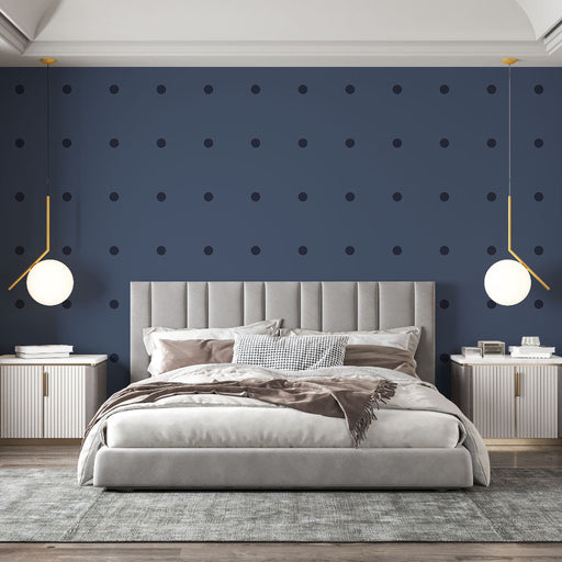 Studio SamaAggiungi un tocco di fascino moderno al tuo spazio con la nostra carta da parati a pois blu e navy. Questo design elegante è perfetto per aggiunger...