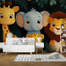 Carta da parati giungla-animali | Divertenti animali sorridenti nel verde