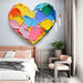 Questa elegante carta da parati murale presenta un cuore realizzato con pennellate spesse e testurizzate, in un armonioso mix di colori vivaci e tonalità allegre. Sfumature di giallo, rosa, blu e verde si uniscono in una bellissima combinazione dinamica che conferisce un tocco artistico ed espressivo a qualsiasi spazio.