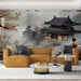 Questa carta da parati trasporterà il tuo interno in un paesaggio asiatico incantevole con un tempio tradizionale visibile maestosamente attraverso la leggera nebbia. I rami di ciliegio in fiore portano un tocco di leggerezza e poesia, accentuando la serenità della scena. Le morbide tonalità di rosa e beige creano un'atmosfera rilassante e accogliente.