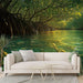 Questa carta da parati evoca una scena naturale tranquilla con radici di mangrovia che si immergono in acqua cristallina. Il gioco di luci e riflessi crea un'atmosfera serena, favorevole al relax. Le varie sfumature di verde e oro apportano una dimensione calda e vivace, migliorando l'atmosfera immersiva della natura.