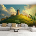 Carta da parati mulino a vento | Scena bucolica con mulino e campi verdi