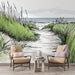 Questa carta da parati murale illustra un tranquillo paesaggio costiero, dove un sentiero sabbioso si snoda tra ciuffi di erba marina, offrendo un invito a evadere. Linee delicate e tonalità di verde aggiungono un tocco artistico e naturale, perfetto per creare un'atmosfera serena.