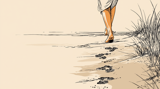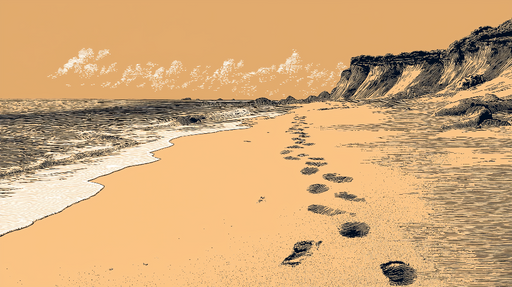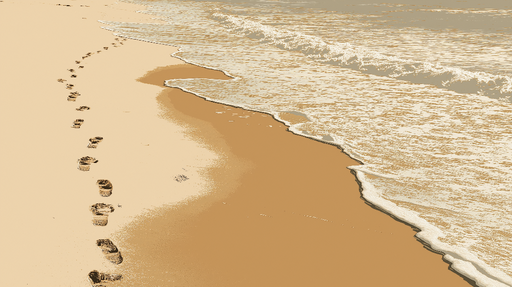 WonderMuralQuesto wallpaper evoca un'atmosfera serena e meditativa, illustrando impronte su sabbia dorata con onde delicate che accarezzano la riva. I toni ca...