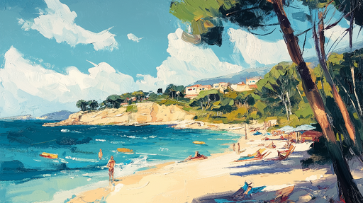 WonderMuralIl nostro wallpaper evoca una giornata perfetta in spiaggia, dove il sole splende sulla sabbia dorata. Il paesaggio presenta bagnanti che godono de...