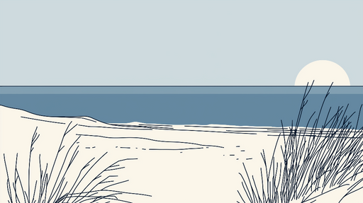 WonderMuralQuesta illustrazione evoca un'atmosfera serena, grazie alle sue tonalità tenui di blu e beige. Il design presenta una bellissima spiaggia dove il m...
