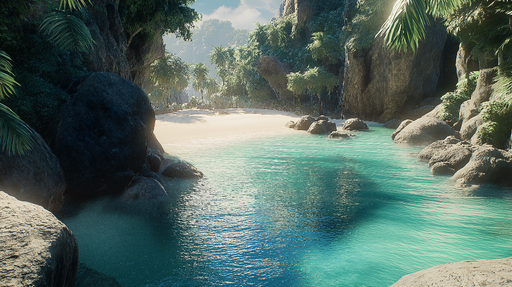 WonderMuralQuesta carta da parati murale evoca una idilliaca spiaggia tropicale, dove le acque turchesi si mescolano con rocce naturali in un'atmosfera serena...