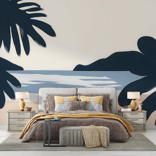 Visualizza tutti i dettagliCarta da parati spiaggia tropicale | Foglie scure e oceano sereno