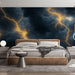 Questa affascinante carta da parati presenta un design drammatico di nuvole nere turbinanti, trafitte da fulmini abbaglianti. Il contrasto intenso tra le tonalità scure e la luminosità dei fulmini crea un'atmosfera sia misteriosa che energica, perfetta per aggiungere carattere a qualsiasi stanza.