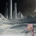 Carta da parati universo | Paesaggio lunare futuristico con strutture monumentali
