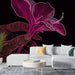 La nostra superba carta da parati murale presenta un design astratto che mostra una mano stilizzata che tiene un delicato fiore nei vivaci toni del rosa. Il contrasto con lo sfondo nero enfatizza l'effetto visivo, creando un'atmosfera moderna e audace in qualsiasi ambiente.