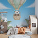Carta da parati panda in mongolfiera | Un panda gioioso che vola in un ambiente tropicale