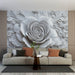 Questa carta da parati murale presenta un sontuoso motivo di rosa in rilievo, circondato da delicati ornamenti floreali e fogliame. La finitura bianca elegante crea un'atmosfera pura e moderna, ideale per aggiungere un tocco di sofisticatezza a qualsiasi stanza.