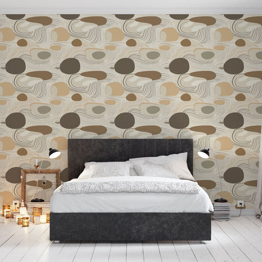 WonderMuralQuesta esclusiva carta da parati murale presenta un motivo astratto di ispirazione organica, dove forme fluide si fondono in tonalità di beige, mar...