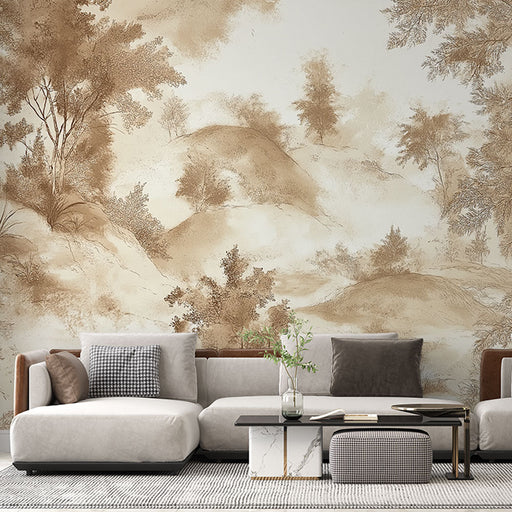 WonderMuralQuesta carta da parati shabby chic presenta un magnifico motivo di paesaggio naturale illustrato in delicate tonalità di marrone, creando un'atmosf...