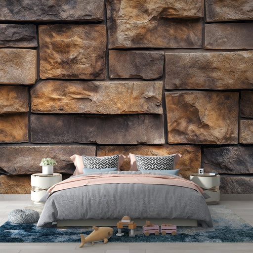 WonderMuralQuesta carta da parati murale imita perfettamente un muro di pietra naturale con tonalità calde di marrone e tocchi di grigio. Le texture realistic...