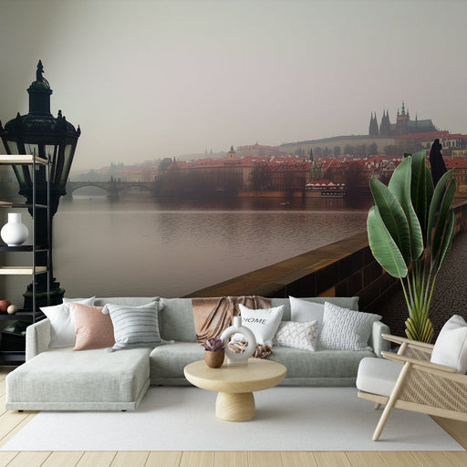 Visualizza tutti i dettagliCarta da parati sul ponte | Atmosfera nebbiosa della città storica