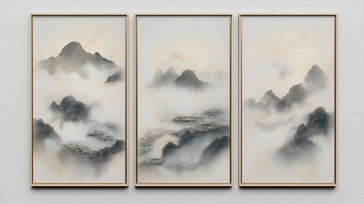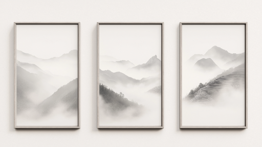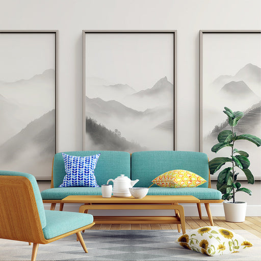 WonderMuralQuesta carta da parati murale offre un set di tre pannelli raffiguranti paesaggi montani avvolti in una leggera nebbia, creando un'atmosfera serena...