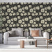 Carta da parati murale floreale nera | Motivi floreali bianchi su sfondo scuro