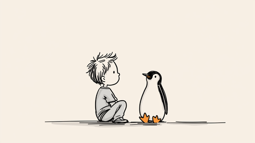 Visualizza tutti i dettagliCarta da parati per bambini | Un ragazzo e un pinguino in stile minimalista