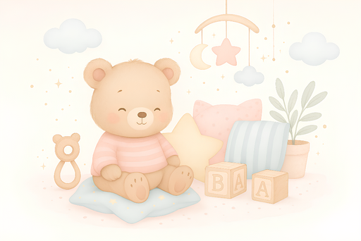 WonderMuralIl nostro bellissimo wallpaper presenta un adorabile orsetto di peluche seduto su un cuscino, circondato da splendidi elementi decorativi per la st...