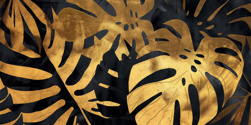 Flare ArtsImmergiti in un'atmosfera esotica con questa carta da parati Tropical Gold Leaf . Le sue lussuose foglie dorate su uno sfondo nero profondo portan...