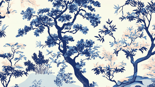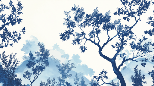 Visualizza tutti i dettagliCarta da parati shabby chic | Eleganti alberi blu su sfondo morbido