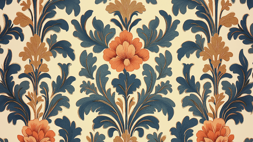 WonderMuralQuesta carta da parati shabby chic si distingue per la sua elegante composizione floreale in cui si intrecciano tonalità di blu scuro, arancione ca...