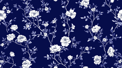 Visualizza tutti i dettagliCarta da parati shabby chic | Delicate white flowers on midnight blue background