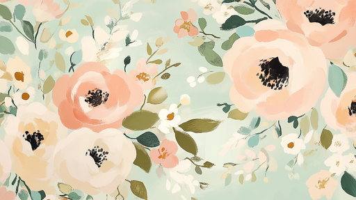WonderMuralQuesta carta da parati shabby chic presenta un bellissimo motivo di fiori pastello in tonalità morbide di pesca e bianco, arricchito da delicate fo...